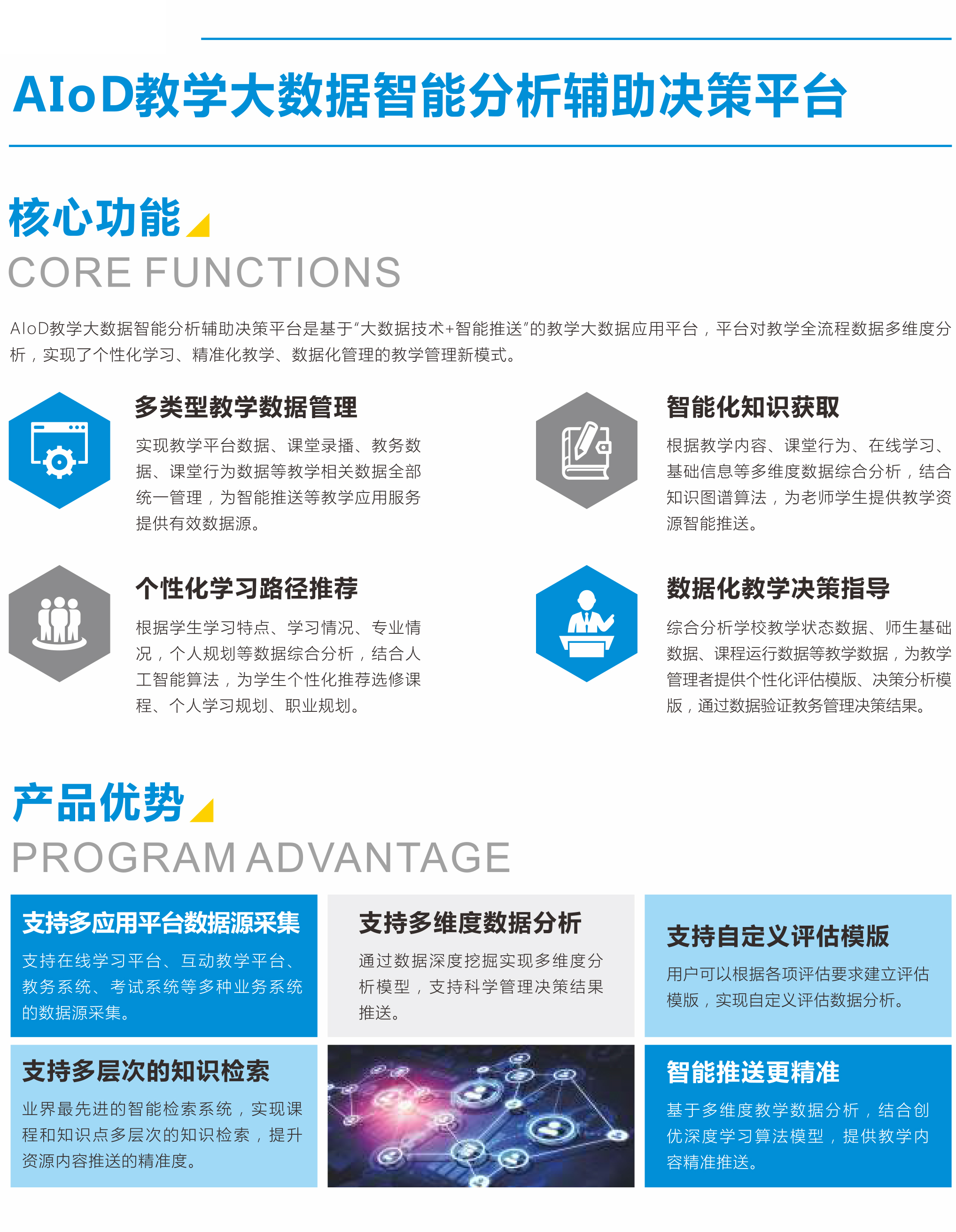 三盟科技AIoD大數據智能管理平臺是專注于教育行業,通過校內外全量數據采集、處理、分析,為高校構建海量數據倉庫,挖掘數據核心價值,提供...