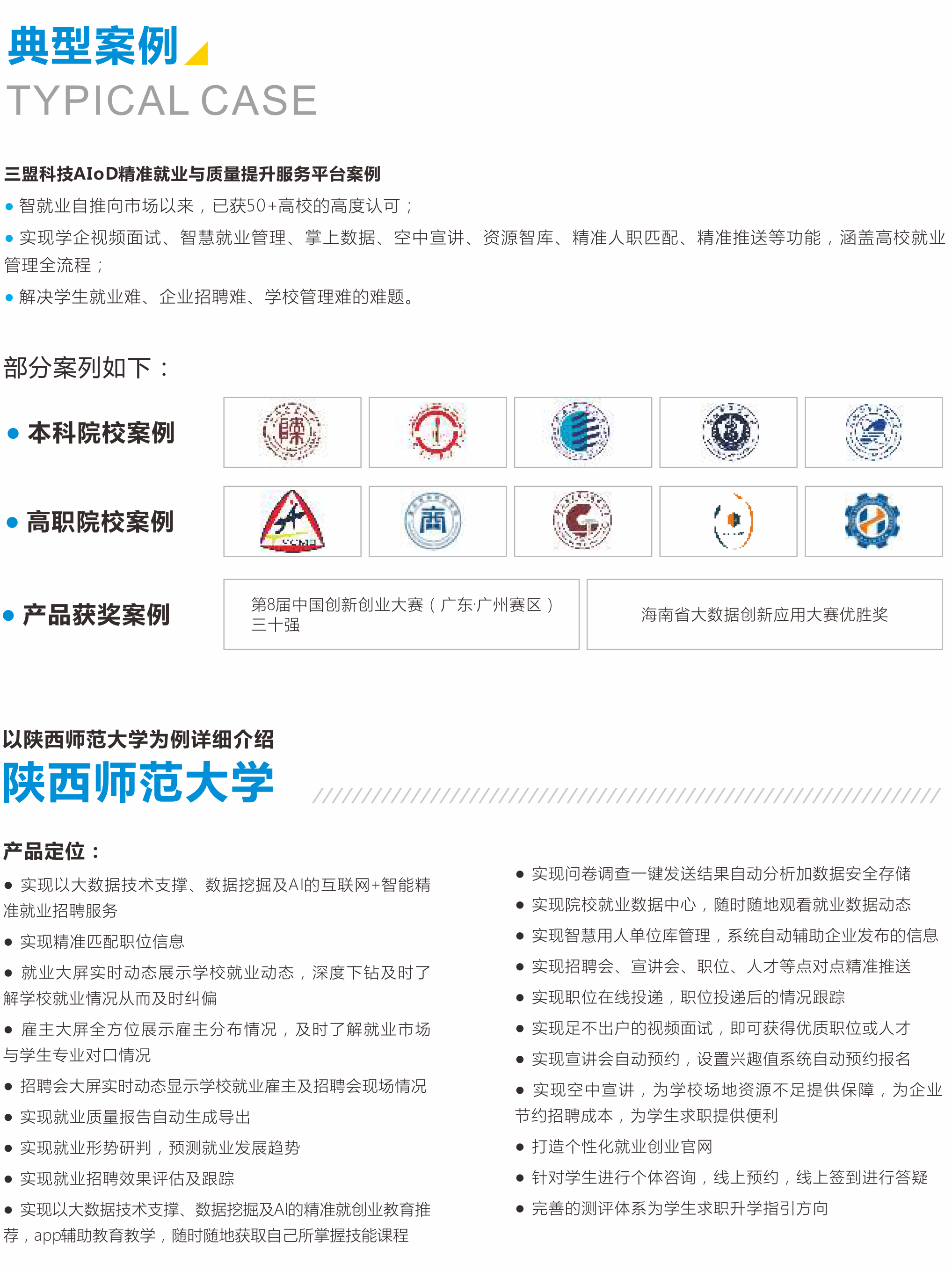三盟科技股份有限公司(簡稱三盟科技)是一家專注AI+大數據技術,專注教育,將AI+大數據技術與教育行業(yè)應用場景深度融合,自主創(chuàng)新研發(fā),為教育數字化提供整體解決方案的軟件技術服務商。
