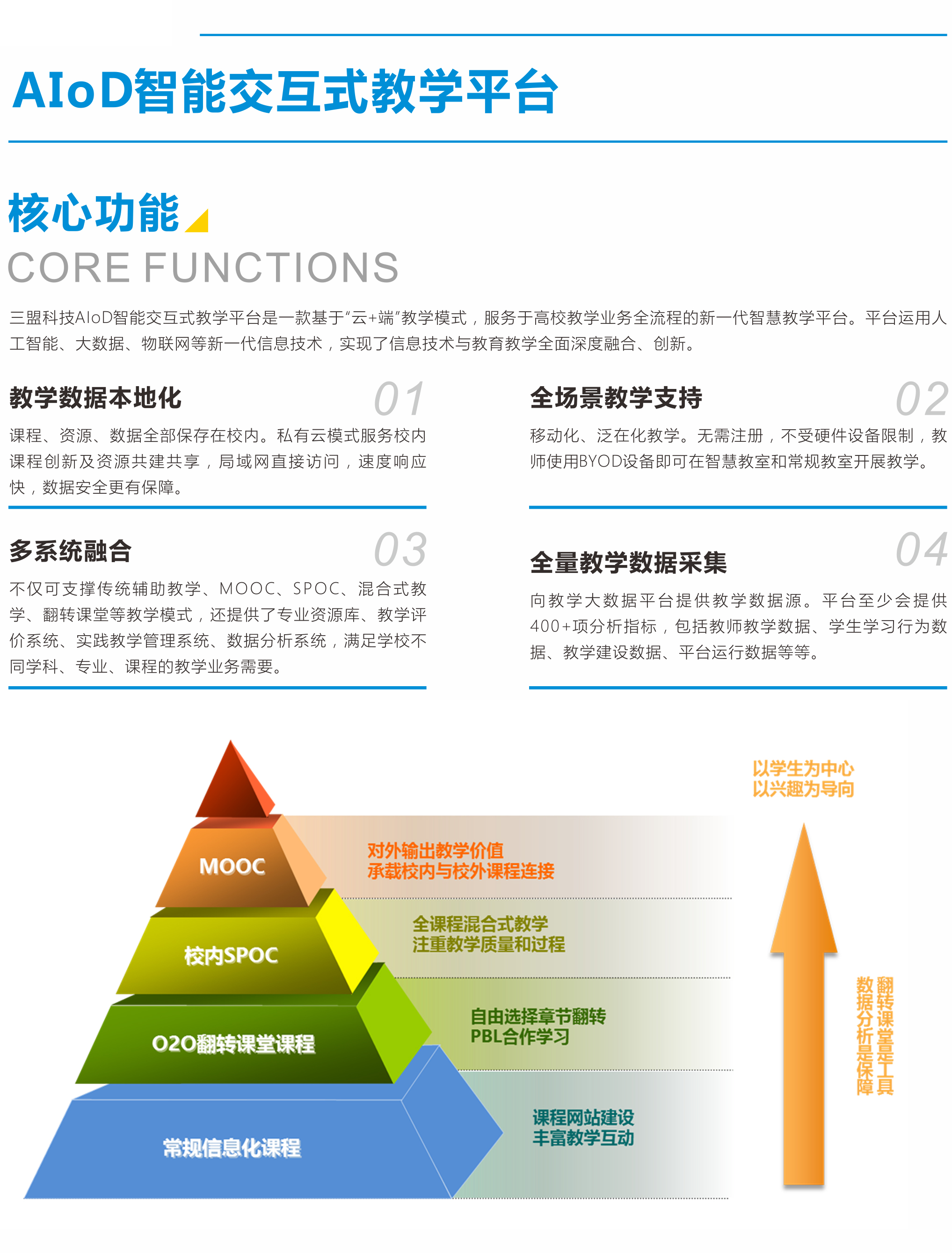 三盟科技AIoD大數據智能管理平臺是專注于教育行業,通過校內外全量數據采集、處理、分析,為高校構建海量數據倉庫,挖掘數據核心價值,提供...