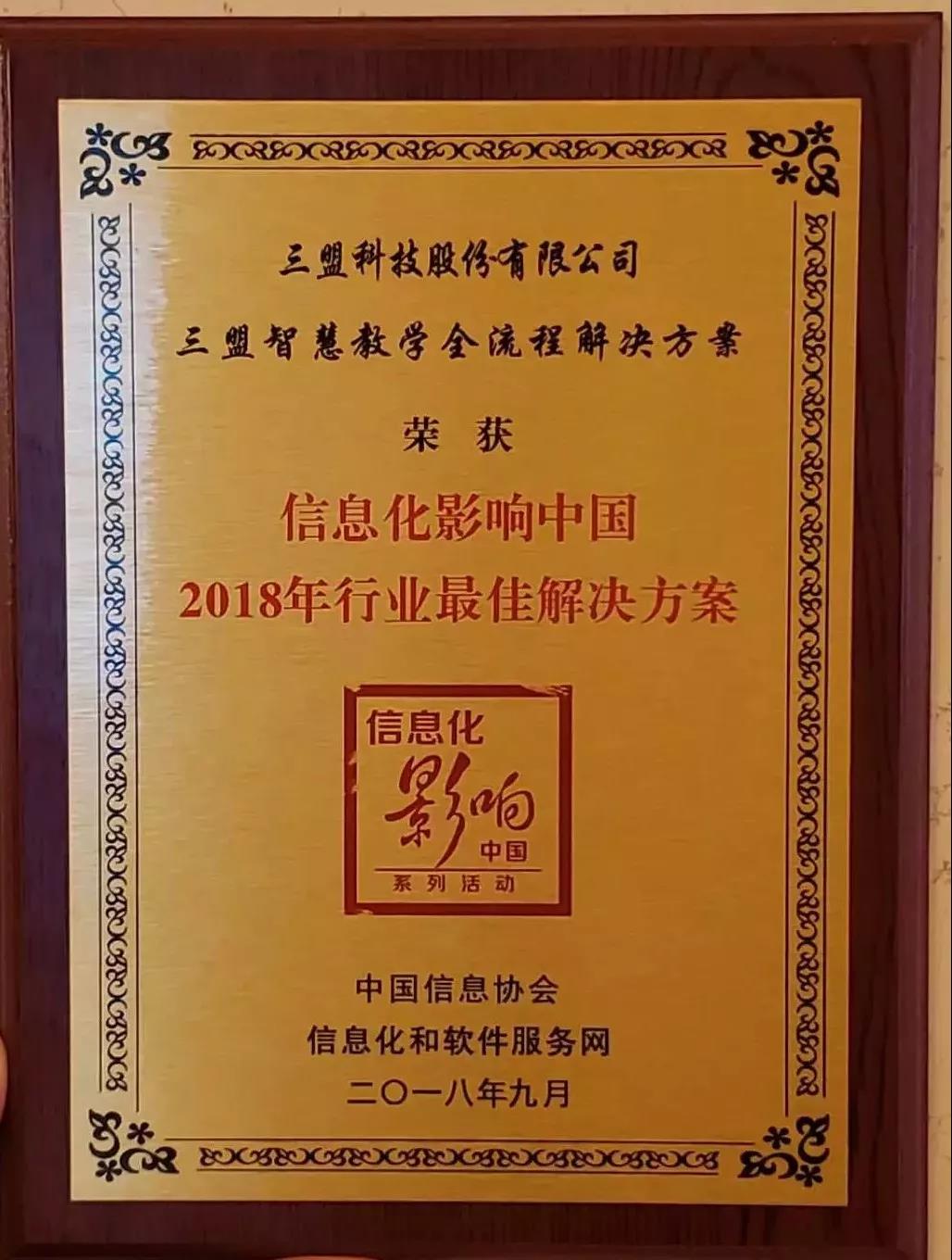 2018年9月20日,由中國信息協(xié)會(huì)主辦,信息化和軟件服務(wù)網(wǎng)和中國信息協(xié)會(huì)傳媒中心協(xié)辦的“2018中國信息化創(chuàng)新發(fā)展大會(huì)在北京舉行。三盟科技憑借在智慧教學(xué)領(lǐng)域的杰出地位,應(yīng)邀出席了本次大會(huì),其三盟智慧教學(xué)全流程解決方案在“信息化影響中國·2018獎(jiǎng)項(xiàng)評(píng)選活動(dòng)”中斬獲“2018教育行業(yè)最佳解決方案”大獎(jiǎng)。