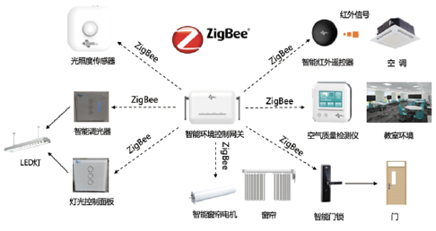 通過物聯網相關技術實現對教室內所有的設備進行集中統一管理,實現對教室內的電腦、功放、交互一體機、視頻矩陣、新風系統等產品控制;通過無線的ZIGBEE技術實現對教室內的空調、燈光、窗簾、門鎖的控制,同時可根據光照度傳感器采集教室內的光照度數據,根據空氣質量檢測儀檢測教室內的溫度、濕度、二氧化碳、PM等。為學校大幅降低采購成本、人力成本,打破系統孤島并減少故障發生率,同時營造一個環保健康的教學環境,對于老師而言,通過一站式服務,方便快捷,避免多次操作。