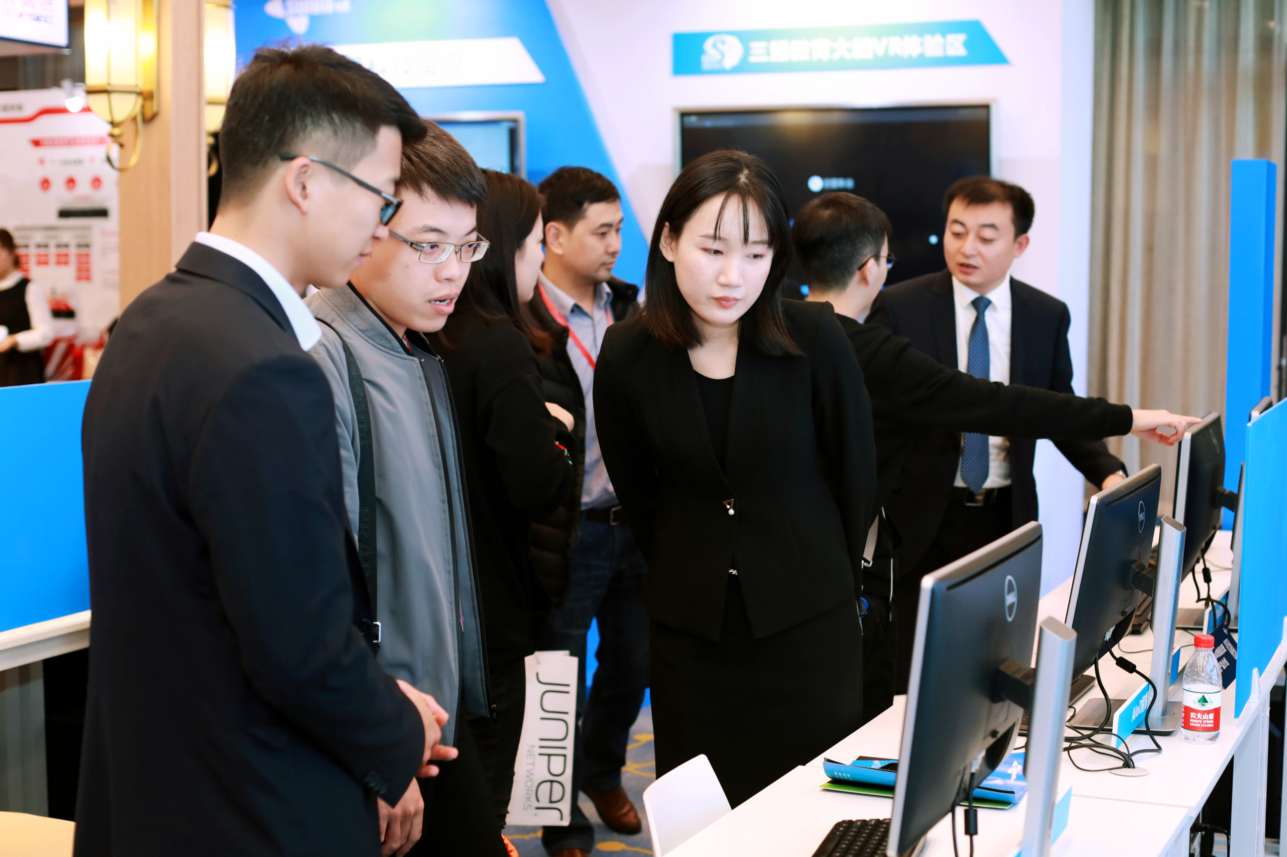 三盟科技展區以“EDU BRAIN”為核心,重點圍繞人工智能AI、大數據AIoD、物聯網AIoT、人臉識別AIoF四大技術系列產品互動體驗,現場模擬的領導駕駛艙,以大屏形式展示三盟科技教育大腦相關產品,新一代信息技術與教育教學場景的深度融合,吸引了大批參會客戶駐足交流。