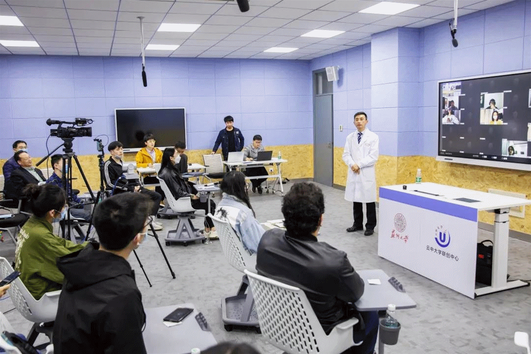 配備的教具及設備“天團”,為蘇大老師打開了一扇“任意門”。老師可通過對桌椅的任意組合,靈活布局教學空間;利用無線投屏和多屏調度,進行多維度展示,來實現小組討論、團隊分享、成果展示、混合式教學等多種新型教學實踐。
