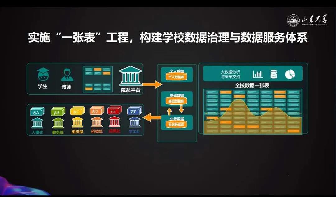 針對高校數據治理中面臨的標準不落地、需求一直變、孤島未打通等難題,他指出數據全量中心提供了很好的解決方案。它能完成對學校所有原始數據的采集,并以國標校標為標準,將各業務系統的數據標準化,幫助學校建立統一的全量數據共享平臺。