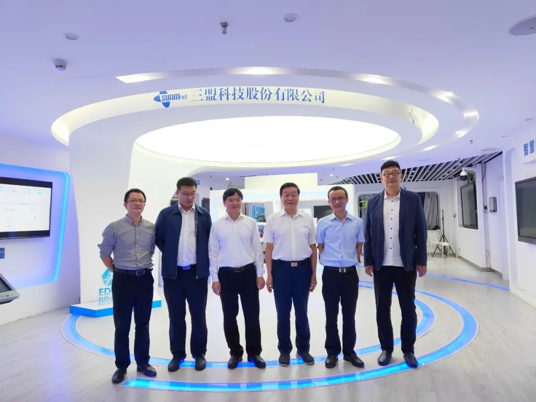 近日,香港藍海發展戰略研究院常務副院郭玉琨攜鞍山市政府副市長孫平、副秘書長蘇曉峰、鞍山市招商引資服務中心主任苑振超、鞍山市大灣區招商引資服務中心主任周春潤、鞍山市政府辦王文浩等一行領導蒞臨三盟科技考察交流。三盟科技常務副總裁陳國鎮、大數據產品總監羅龍等熱情接待了考察團并陪同參觀。