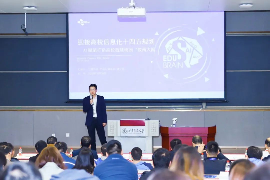10月18日,以“5G賦能新發(fā)展,新基建創(chuàng)造新未來(lái)”為主題的首屆新基建暨5G+智慧教育高峰論壇在中國(guó)西部科技創(chuàng)新港舉行。在智慧校園建設(shè)分論壇上,三盟科技產(chǎn)品行銷(xiāo)總監(jiān)徐少亮帶來(lái)題為“迎接高校信息化十四五規(guī)劃—— AI賦能打造高校智慧校園‘教育大腦’”的報(bào)告,分享校園“教育大腦”整體解決方案,助力高校“十四五”信息化建設(shè)。