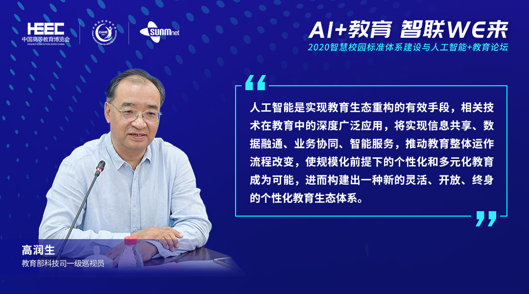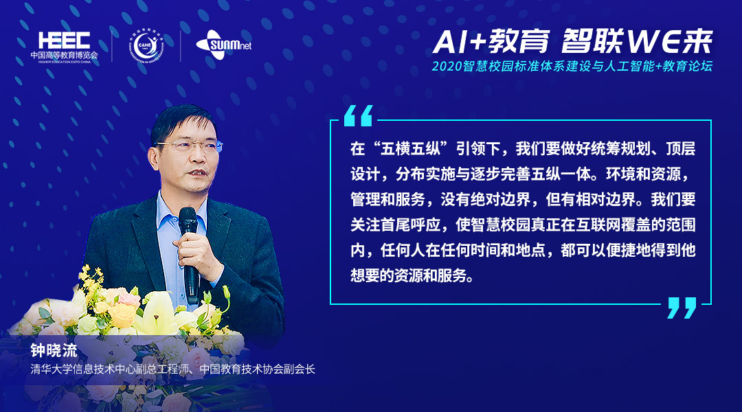 11月8日至9日,2020智慧校園標準體系建設與人工智能+教育論壇在長沙盛大舉行。論壇特邀20余名教育專家學者,以“AI+教育 智聯WE來”為主題展開研討,探索人工智能在智慧校園建設、智慧教學、智慧管理、智慧服務中的創新應用,助力“十四五”規劃。專家們個個金句頻出,為教育信息化發展支招!