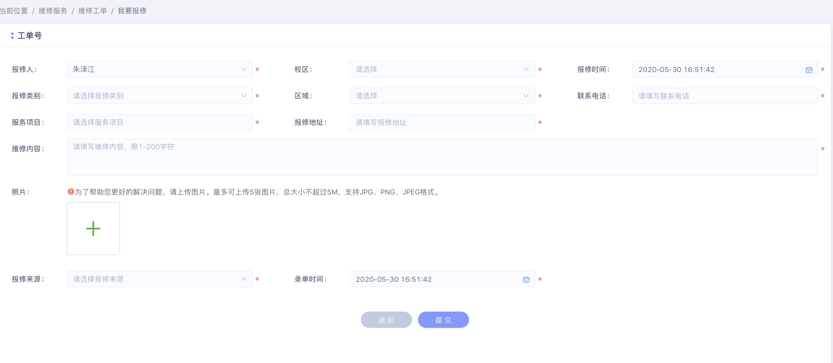 維修服務(wù)平臺將廣外現(xiàn)有維修業(yè)務(wù)流程信息化,為師生提供線上報修服務(wù)。平臺極大程度上縮短了報修的時間,并實現(xiàn)維修過程可追溯。學(xué)生還可進行自主評價,有效監(jiān)督服務(wù)效率及質(zhì)量,同時提升了師生滿意度。
