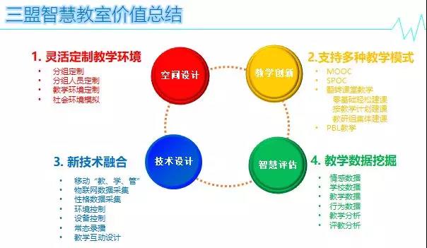 三盟智慧教室整體解決方案的設計是以創新教學為核心,圍繞智慧環境、智慧管理、智慧評估四個方面展開的。