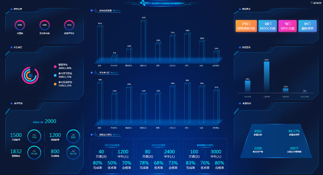 智能決策助手平臺通過對全校的教學數(shù)據(jù)、教學行為數(shù)據(jù)及教室空間數(shù)據(jù)進行分析,將數(shù)據(jù)的統(tǒng)計、分析和預警結(jié)果進行可視化呈現(xiàn),輔助校領(lǐng)導或職能部門科學化管理學校的日常教學、專業(yè)建設(shè)、教學評估、設(shè)備資源,為高等院校領(lǐng)導的各項教學管理決策提供有力支撐。