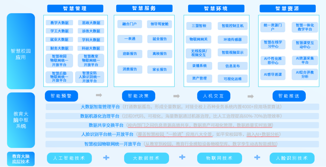 同時,三盟科技在助力教育數字化戰略轉型方面,瞄準各類院校數字化轉型的痛點、難點,積極探索教育數字化轉型的新路徑,并推出校園教育大腦,為推動眾多院校的數字化轉型提供實質性助力。