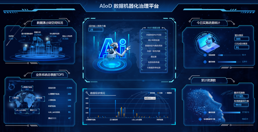 2)數據治理機器化:業界首創的數據治理機器人,可極大提升數據治理服務水平,通過機器自動治理及人機交互的操作方式,節約了60%-70%數據治理時間。