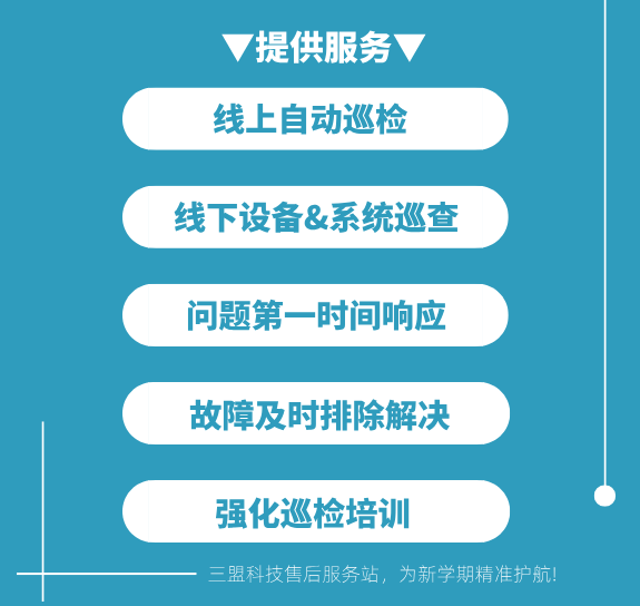 疫情全面放開后的第一個新學期,相較于以往來的更早一些,為支撐各大高校開學工作的開展,全力保障學校管理信息化、教育教學信息化正常運行,三盟科技成立售后服務專項組,啟動“春季校園專項巡檢行動”,針對我司交付的項目變“被動故障”為“主動排除”,在巡檢行動中早發現、早報告、早處置,防患于未然,消除開學季后顧之憂。