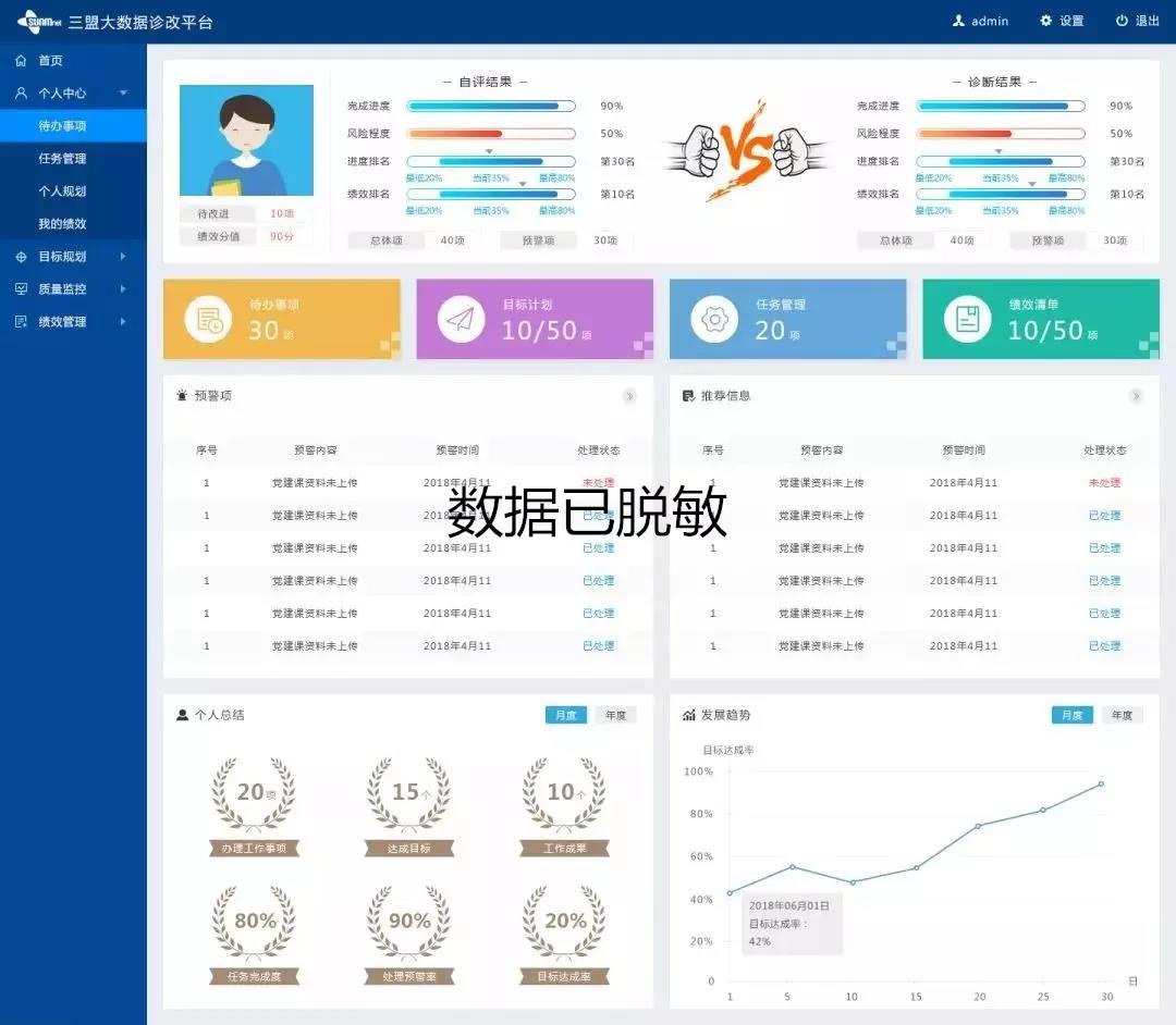 三盟科技據此設計教學診改平臺,以“5縱5橫一平臺”為設計理念,以院校目標鏈與標準鏈為基礎,以“8字形質量改進螺旋”為指導,整合挖掘院校各業務系統數據,運用大數據技術建設智能信息化平臺,實現實時、常態化采集學院數據,支撐學校的診改工作。