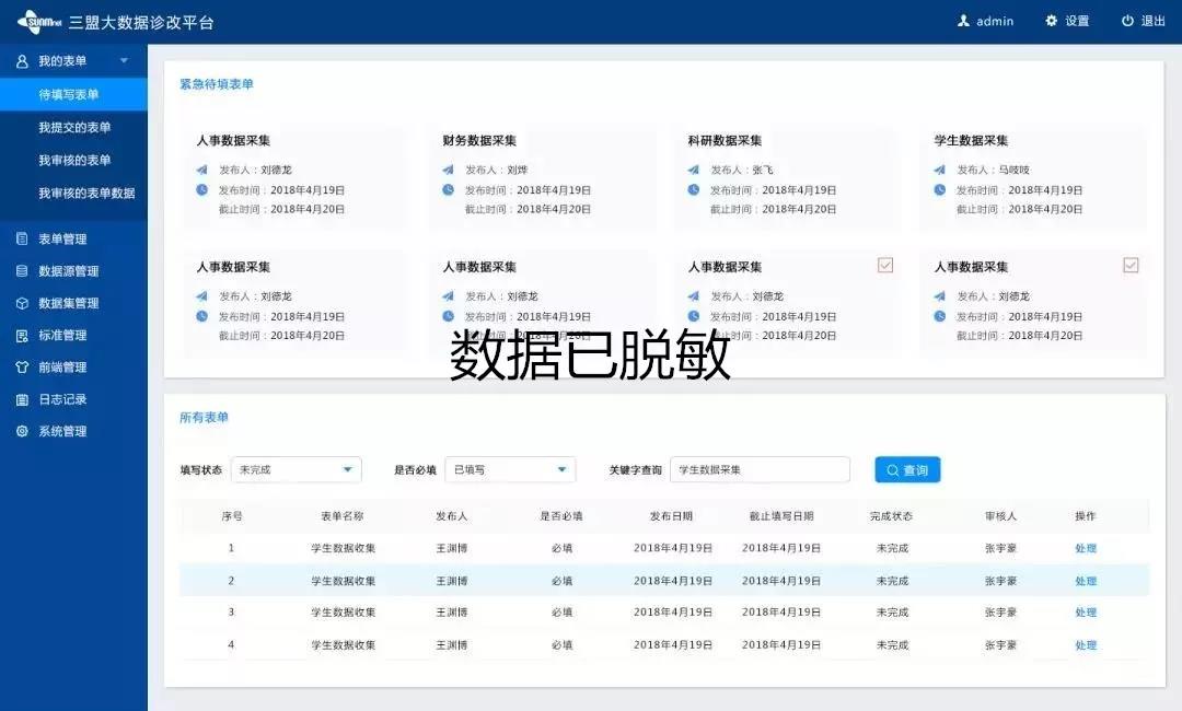 在診改過程中,會面臨數據缺失問題,對于學校業務系統不能覆蓋的數據,智能填報系統解決在診改過程中面臨的數據補全及業務需求快速定義表單數據填報的問題,如:項目報表,年度目標計劃報表等,解決數據缺失及填報需求。