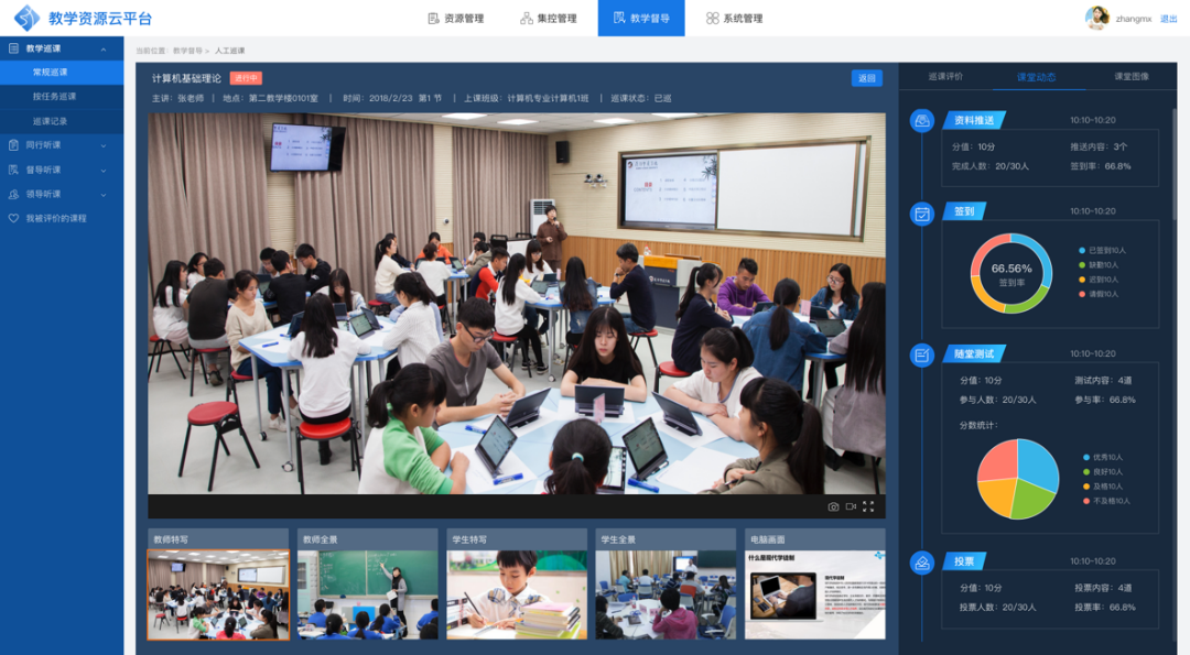 方案做到貫穿教學(xué)空間、課堂教學(xué)、智慧資源、督導(dǎo)評價、教學(xué)分析等教學(xué)全流程,整合教育數(shù)據(jù)資產(chǎn),助力高校構(gòu)建一體化的智慧教學(xué)新生態(tài)。