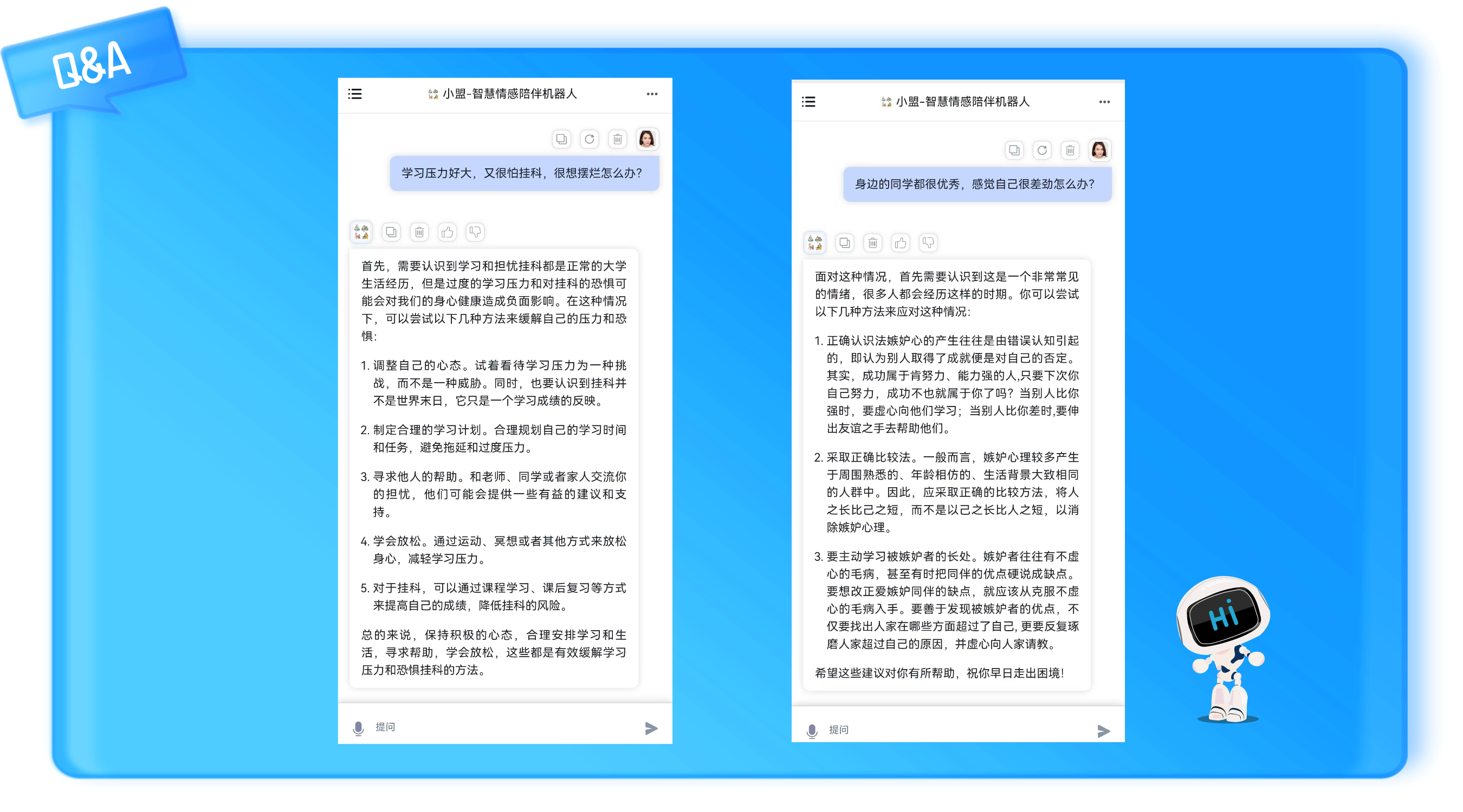 不止于監測和預警,平臺還為學生提供了良好的心理輔導渠道。一方面,通過AI情感陪伴機器人,為學生提供日常紓解壓力的入口,幫助學生及時緩解不良情緒。