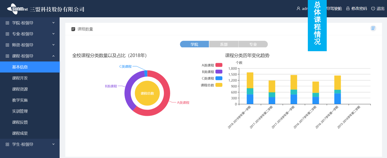 三盟科技通過幾年的不懈努力,現在實際診改落地案例達36所,其中包括5所教育部確定的27所高職診改國家試點院校,陜西鐵路工程職業技術學院和陜西交通職業技術學院兩所院校目前已順利完成國家復核;另外,三盟參與建設的9所院校也順利完成省級復核。通過豐富的實施經驗,三盟科技已經建成了一套科學、專業、高效的教學診改大數據平臺。