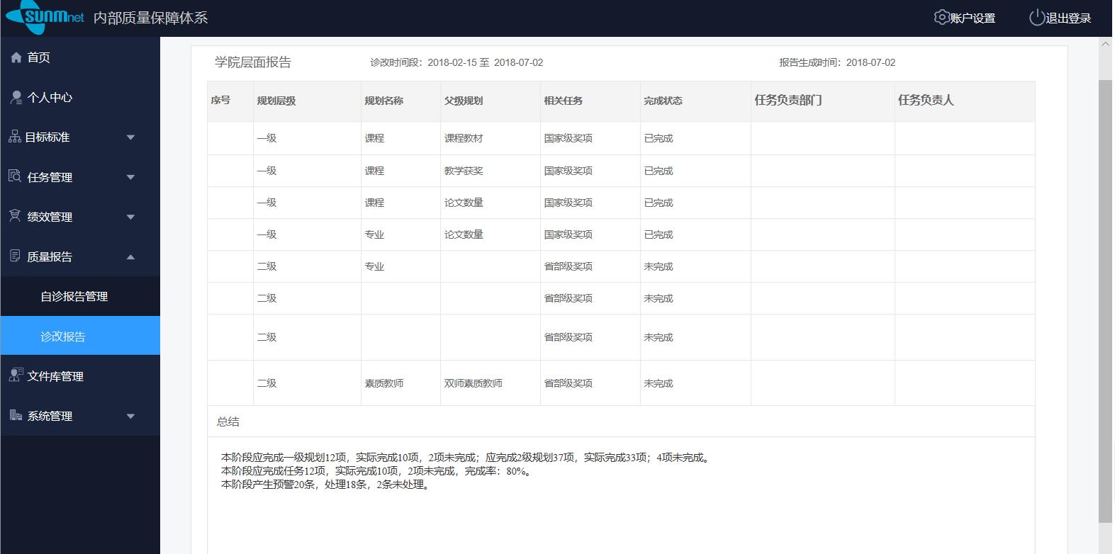 后臺管理系統全面、細化,可根據實際,了解診改情況。亦可通過超級管理員、管理員兩個不同的角色,細化管理系統權限。