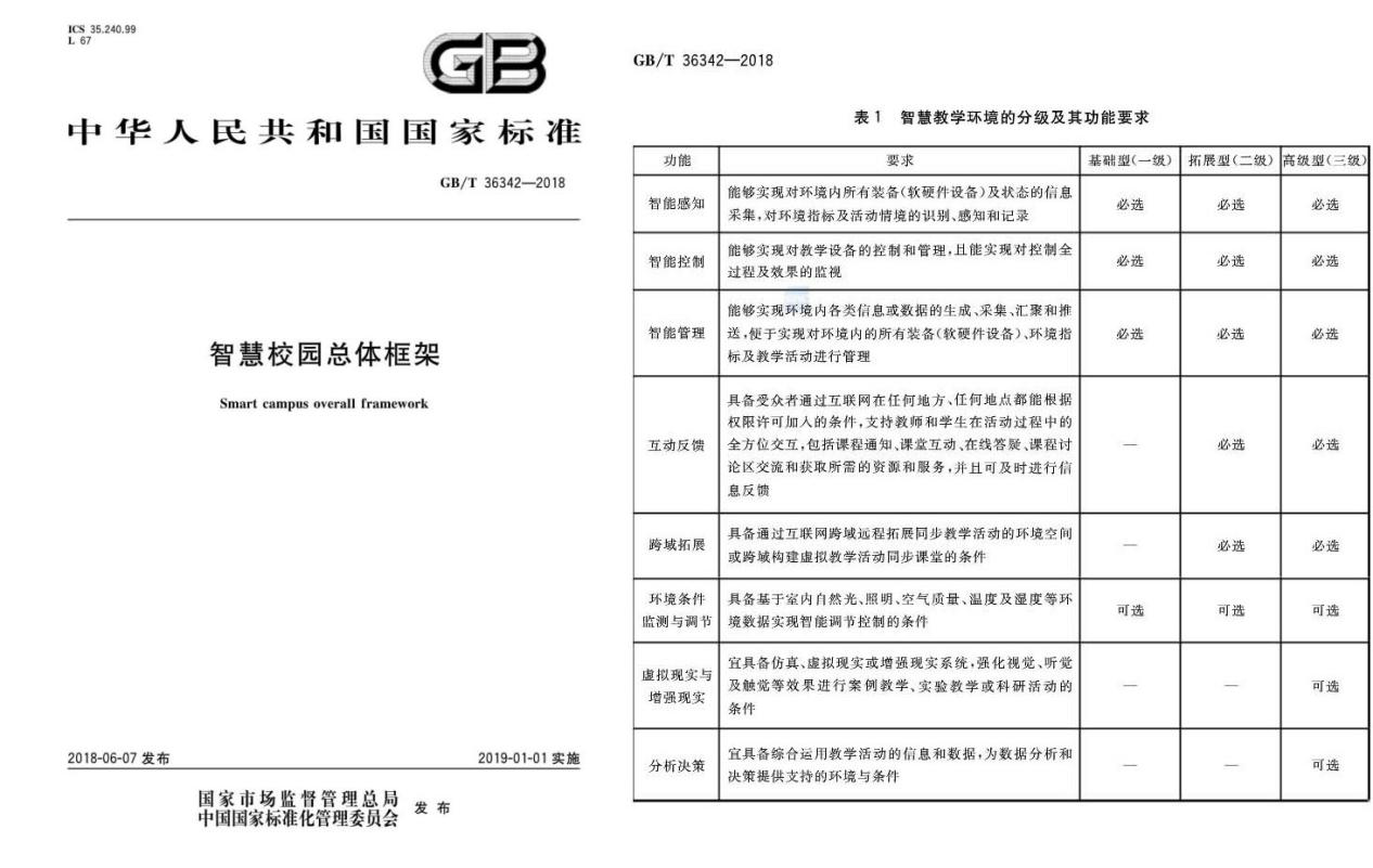2019年1月1日,國家標準化管理委員會頒布的《智慧校園總體框架(GB/T 36342-2018)》,從智能感知、智能控制、智能管理、互動反饋、跨域擴展、環境條件監測與調節、虛擬現實與增強現實和分析決策等8個方面對智慧教學環境進行了定義,巧合的是,從2016年起,三盟科技就在企業內部以8個方面提出智慧教室建設的要求,與國家標準委提出的要求吻合。