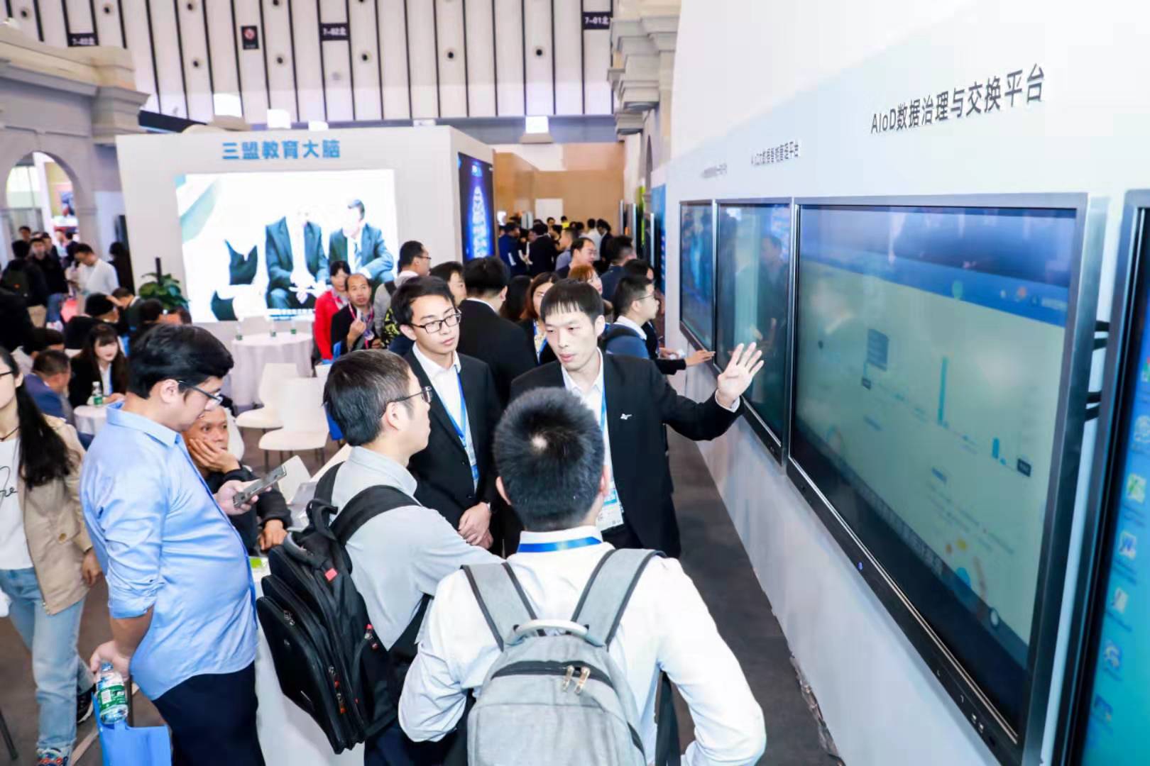 以“教育大腦智慧校園整體解決方案(EDU BRAIN)”為核心,三盟科技在展會現場打造了概念版“三盟科技大學”,展示內容從教育教學場景出發,全方位支撐智慧校園建設,設立物聯網AIoT系列產品、人臉識別AIoF系列產品、人工智能AI系列產品、大數據AIoD系列產品、新一代智慧教室整體解決方案五大展位,零距離互動體驗,一系列前沿產品與技術的展示,吸引了大批參觀者的駐足交流。