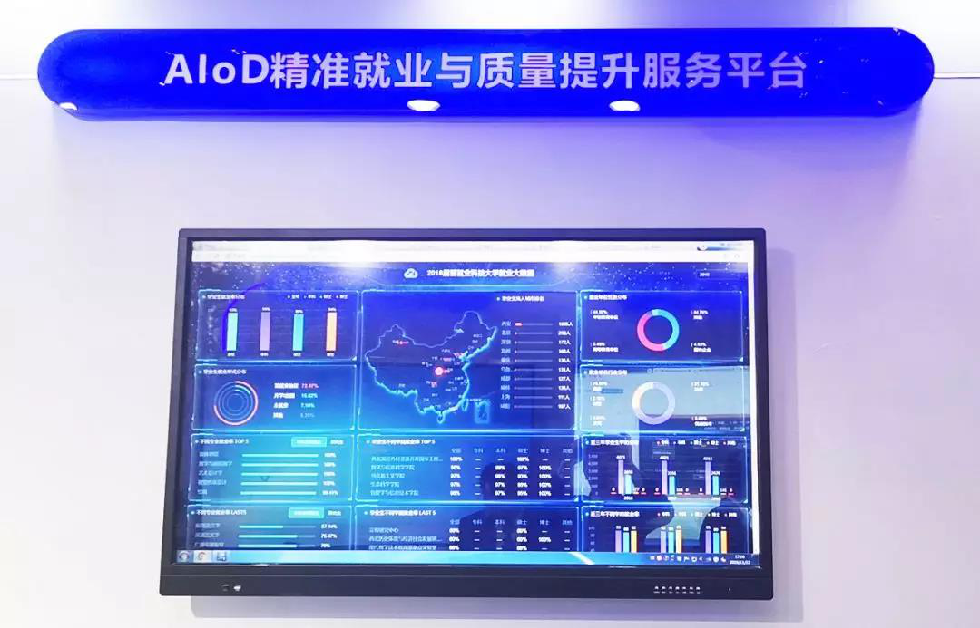 三盟科技展區的核心產品AIoD精準就業與質量提升服務平臺是一款專注于解決學生精準創業就業、企業精準招聘和高校教學就業管理的智能大數據平臺,以大數據挖掘技術、精準推薦核心算法、智能消息推送、數據資源智庫為技術支撐。
