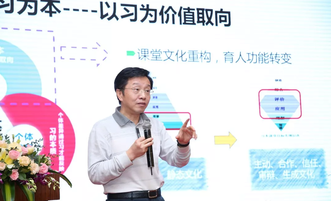 深圳市羅湖區(qū)教育局副局長劉榮青作主題分享,他表示,課堂不改變,就無法實(shí)現(xiàn)新的創(chuàng)新,這不僅僅是學(xué),而應(yīng)由-學(xué)-習(xí)三元結(jié)構(gòu)組成,并指出中國需要用教育和文化來改變世界。