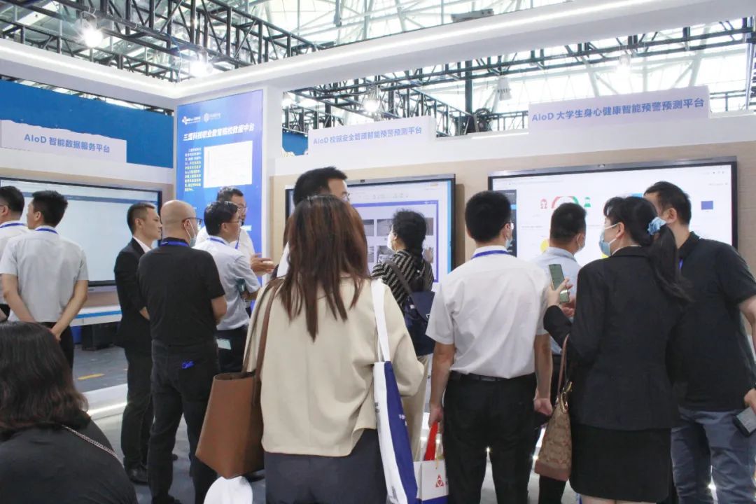 其中,安全預(yù)警預(yù)測(cè)展區(qū)和智慧教學(xué)展區(qū)成為全場(chǎng)關(guān)注的兩大焦點(diǎn)。在安全預(yù)警預(yù)測(cè)展區(qū),充分體現(xiàn)三盟科技對(duì)學(xué)校重點(diǎn)關(guān)注的學(xué)生安全問(wèn)題的深度關(guān)切。該區(qū)域展示的AIoD校園安全智能預(yù)警預(yù)測(cè)平臺(tái)和AIoD學(xué)生心理健康預(yù)警預(yù)測(cè)平臺(tái)獲得眾多院校嘉賓的重點(diǎn)關(guān)注。