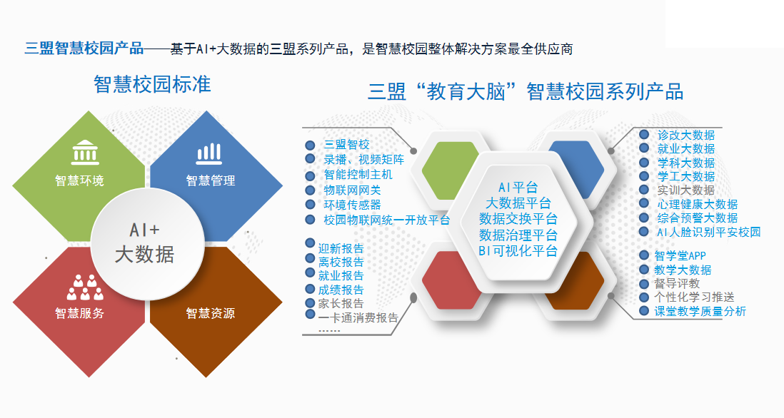 三盟科技基于“教育大腦”戰略,進行智慧校園產品創新,完全符合智慧校園標準。