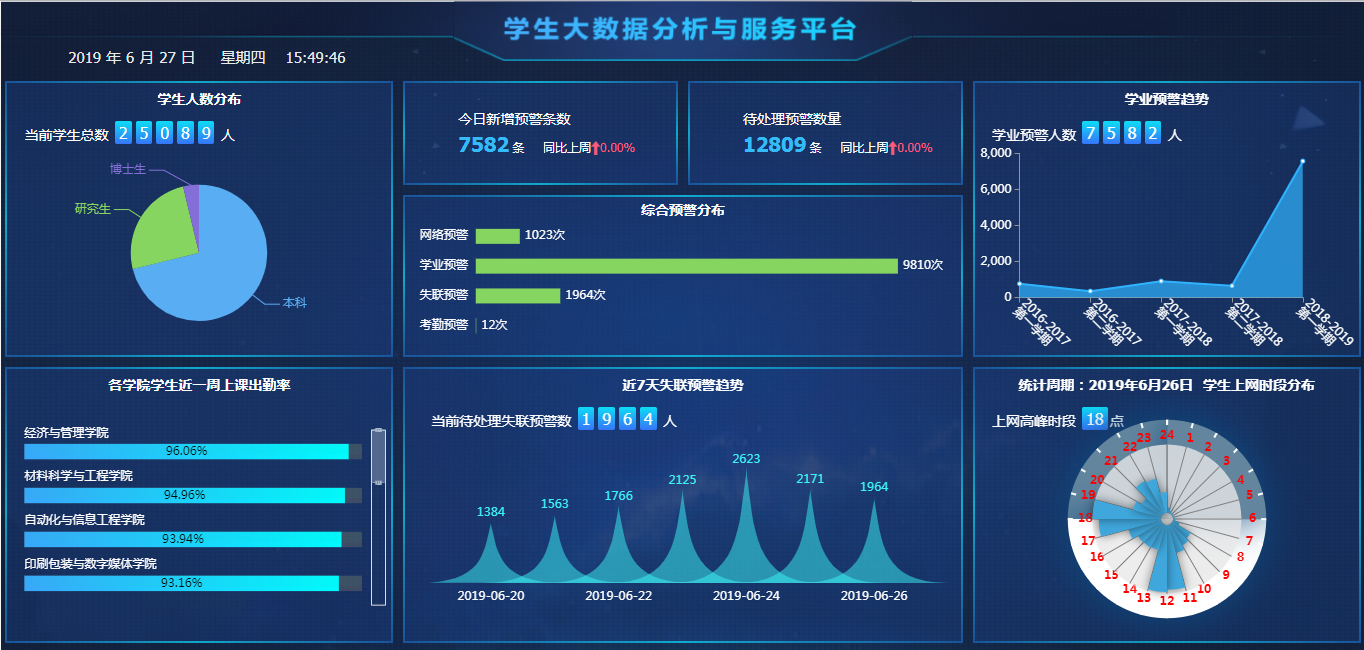 三盟科技學工大數據分析系統有綜合畫像、綜合預警、行為軌跡、精準就業分析、系統管理、思政分析、心理健康分析、精準資助認定八個主要功能模塊。這些功能模塊包括但不限于學工、心理、團委、宿管、離校、就業及其它功能,是學生管理工作的有效輔助工具,對建立良好學風、維護穩定校園秩序、提升管理服務水平都有著重要作用。