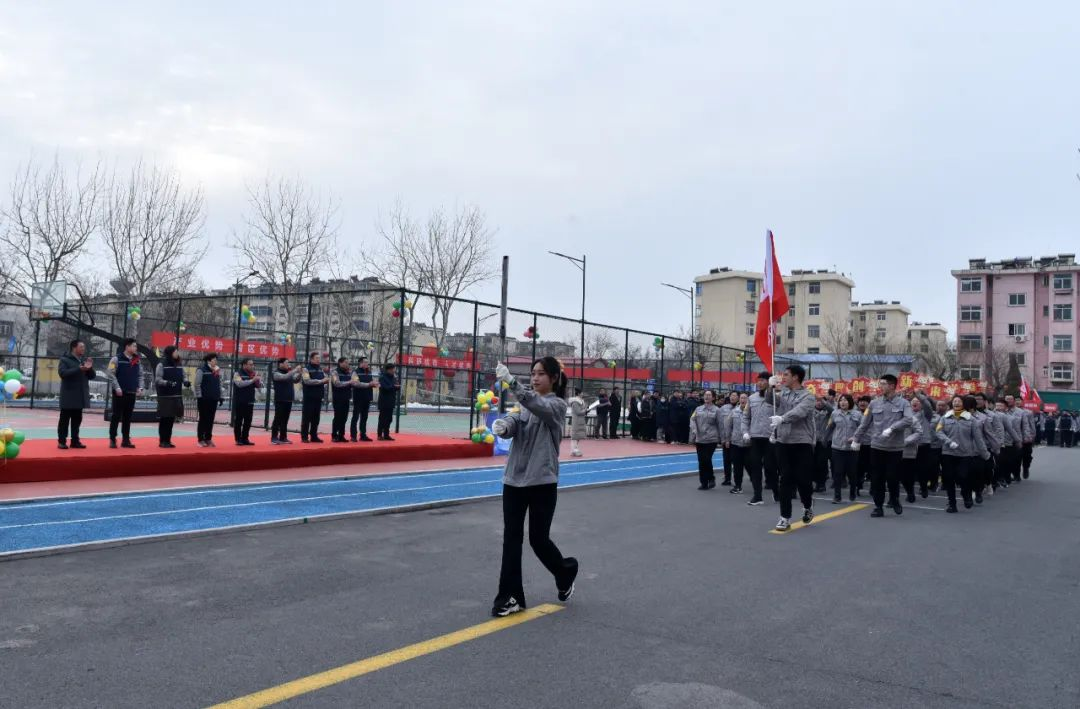 早上8時30分,趣味運動會正式拉開帷幕。伴隨著整齊劃一的步伐、振奮人心的口號,由各職能部門和經(jīng)營單位干部員工組成的8支代表隊,依次通過主席臺接受檢閱,高昂向上的團隊士氣令人為之振奮。