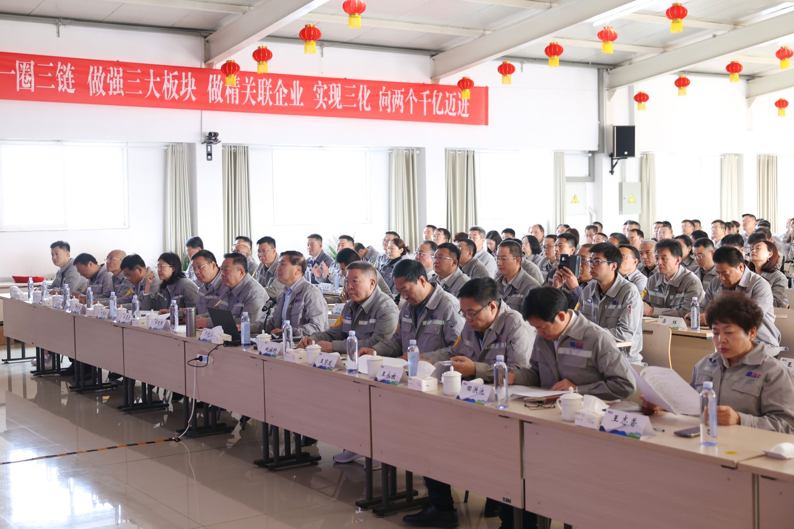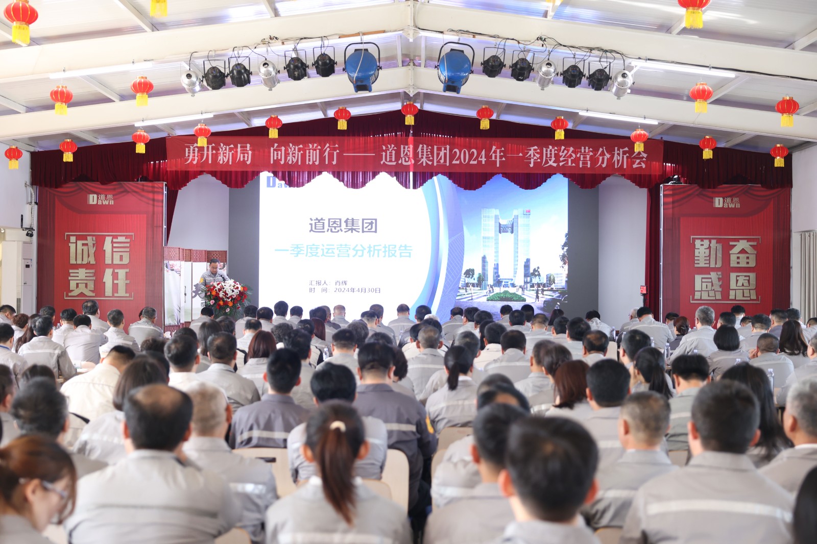 4月30日上午,在道恩商學院召開的道恩集團2024年一季度經(jīng)營分析會,對一季度的經(jīng)營情況進行全面分析和總結(jié),深入探討當前存在的問題和挑戰(zhàn),科學部署二季度各項工作。集團公司董事長、總裁于曉寧,常務副總裁肖輝出席會議并講話。董事會成員、領(lǐng)導班子、各職能部門、經(jīng)營單位副部級以上干部、青干班成員參加會議。