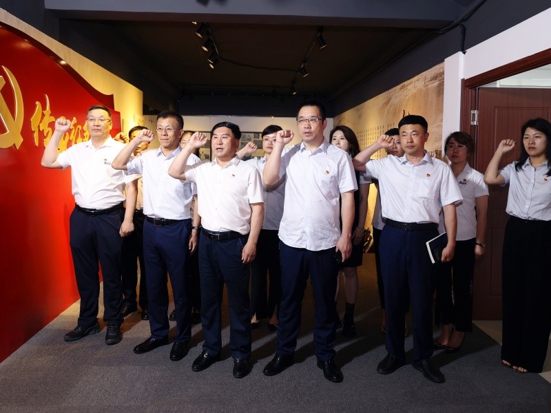 肖應東書記一行實地參觀了道恩集團總部大廳、道恩傳承紅色基因教育基地,了解紅色文化在道恩的傳承與發(fā)展,從紅色藏品中觸摸崢嶸歲月,在紅色故事中汲取強大的信仰力量。在紅色文化墻前,于曉寧書記帶領(lǐng)大家重溫入黨誓詞,進一步堅定了初心使命。