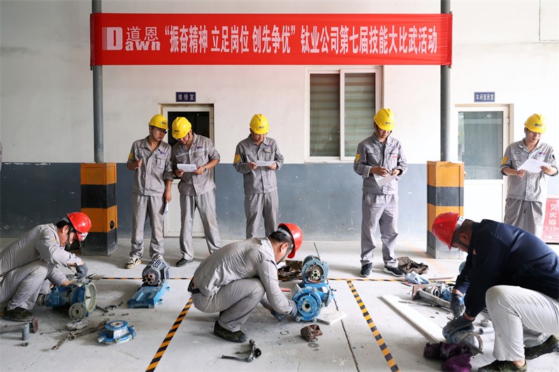 6月22日上午,道恩鈦業(yè)公司舉辦主題為“振奮精神、立足崗位、創(chuàng)先爭(zhēng)優(yōu)”的第七屆技能大比武活動(dòng),鈦產(chǎn)業(yè)板塊所屬的雙龍化工公司職工應(yīng)邀參與。此舉旨在以比促練、以學(xué)增智、以趕提效、以幫聚力、以超賦能,唱響技能成才、技能報(bào)國(guó)的主旋律,為中國(guó)共產(chǎn)黨成立103周年暨道恩集團(tuán)成立33周年獻(xiàn)禮。