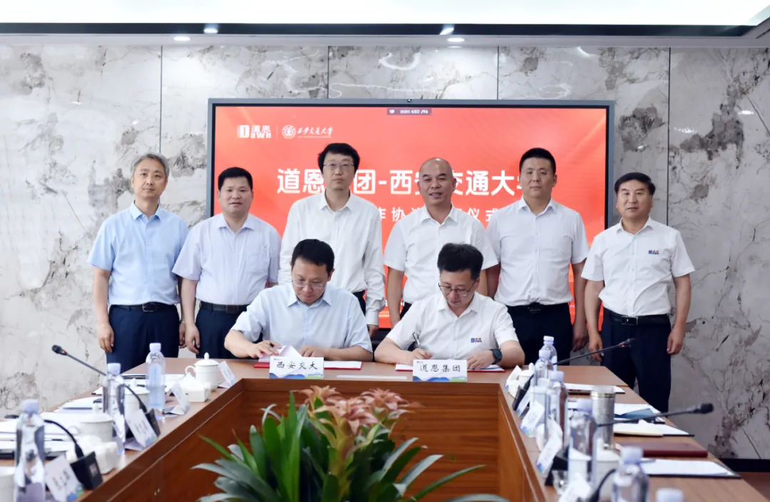 在道恩股份舉行的洽談活動(dòng)中,西安交通大學(xué)校長(zhǎng)助理黃忠德以《校地企一體聯(lián)動(dòng) 產(chǎn)學(xué)研深度合作》為題,介紹了西安交大發(fā)展歷史、辦學(xué)優(yōu)勢(shì)、產(chǎn)教融合模式與成效等情況。一則題為《廿載攜手路 未來(lái)更可期》的短視頻,帶領(lǐng)大家領(lǐng)略了道恩與張立群院士團(tuán)隊(duì)合作的故事。在有關(guān)領(lǐng)導(dǎo)的見(jiàn)證下,西安交通大學(xué)科研院常務(wù)副院長(zhǎng)邵金友和道恩研究院院長(zhǎng)陳青葵簽署校企合作框架協(xié)議,標(biāo)志著雙方開啟了校企合作之旅。
