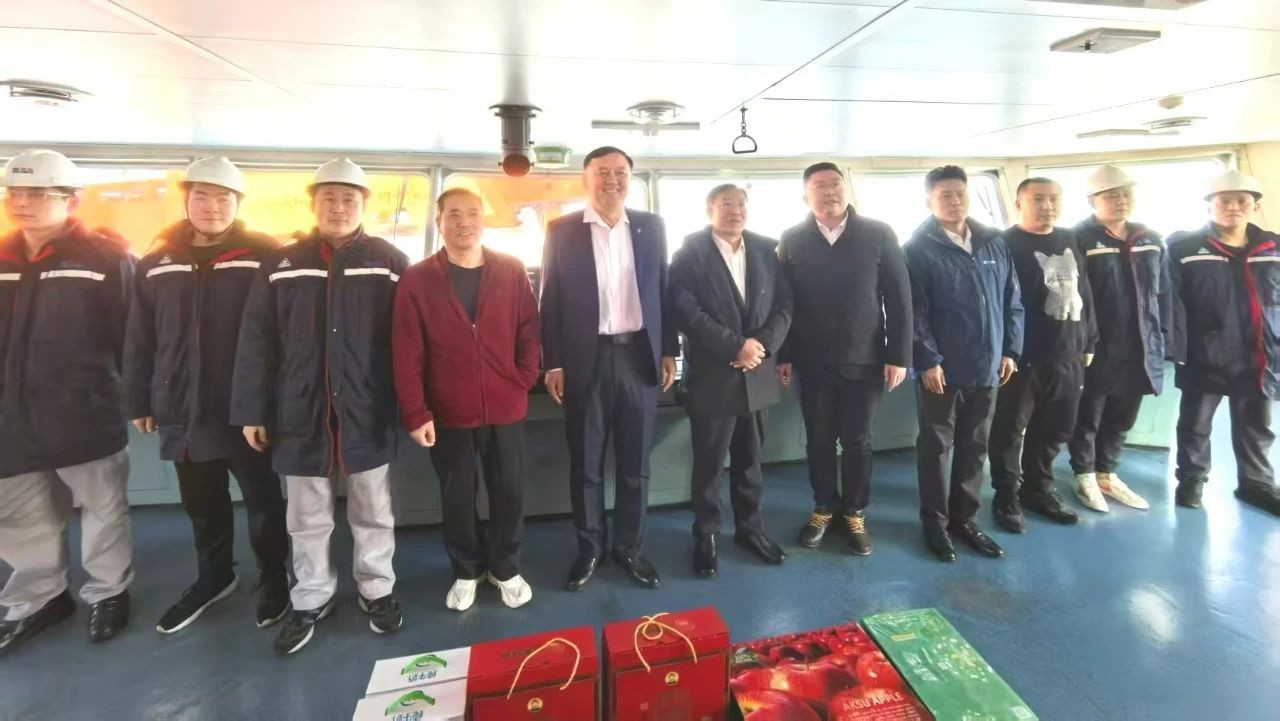 當天上午,華電曹妃甸儲運有限公司黨委書記、董事長魏明玖一行,帶著滿滿的關(guān)懷,登船慰問在崗職工。一踏上甲板,魏明玖便與船員們親切握手,關(guān)切地詢問大家的工作和生活情況,句句暖心,字字真情。