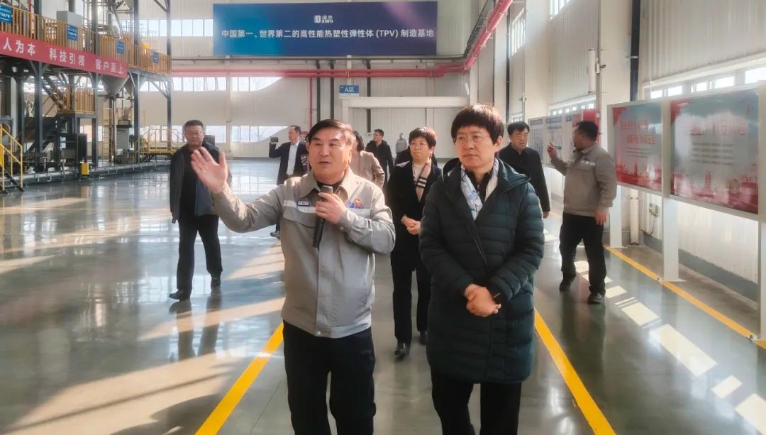 在道恩新材料展示中心,王隨蓮副主任聽取了產(chǎn)業(yè)鏈、產(chǎn)品鏈和企業(yè)鏈打造情況,仔細了解產(chǎn)業(yè)布局、科技研發(fā)、產(chǎn)品性能及應(yīng)用領(lǐng)域等情況。“今天是第三次來道恩,每次來都有變化、都有驚喜!”她對道恩高質(zhì)量發(fā)展所取得的成果給予高度評價。作為國家認定高新技術(shù)企業(yè),道恩股份核心產(chǎn)品榮獲全國制造業(yè)單項冠軍,高性能熱塑性彈性體(TPV)產(chǎn)能位居全球第二,為我國橡膠工業(yè)發(fā)展作出了重要貢獻。王隨蓮副主任走進TPV生產(chǎn)車間,察看高端化、智能化、綠色化生產(chǎn)情況,點贊道恩“引領(lǐng)行業(yè)潮流、打造民族品牌”的家國情懷。