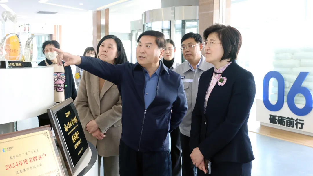 在道恩集團(tuán)總部大廳,李少娜主席聽取了有關(guān)企業(yè)發(fā)展、產(chǎn)業(yè)布局、行業(yè)地位、科技創(chuàng)新及社會責(zé)任等情況介紹,對企業(yè)高質(zhì)量發(fā)展成果表示贊賞,特別肯定了女職工在科技創(chuàng)新、管理提升等關(guān)鍵崗位發(fā)揮的“半邊天”作用。