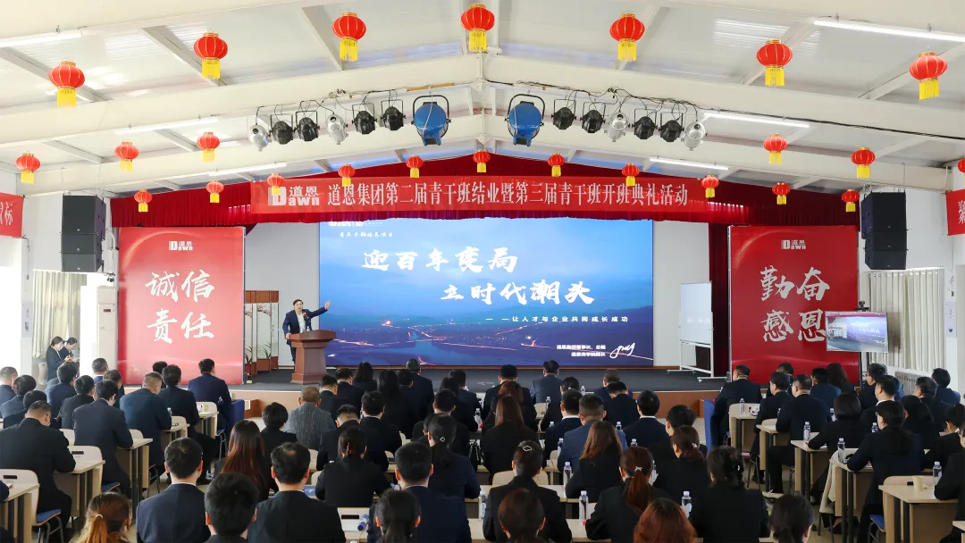 4月20日,道恩集團(tuán)第二屆青干班結(jié)業(yè)暨第三屆青干班開班典禮在道恩商學(xué)院舉行。道恩集團(tuán)董事長(zhǎng)、總裁,道恩商學(xué)院院長(zhǎng)于曉寧出席活動(dòng)并授課,道恩集團(tuán)領(lǐng)導(dǎo)班子成員、各部門部長(zhǎng)、經(jīng)營(yíng)單位總經(jīng)理及人事行政負(fù)責(zé)人,兩屆導(dǎo)師、青干班學(xué)員160余人現(xiàn)場(chǎng)參會(huì),駐外經(jīng)營(yíng)單位通過(guò)視頻連線同步參與,共同見證道恩青年人才成長(zhǎng)的重要時(shí)刻。