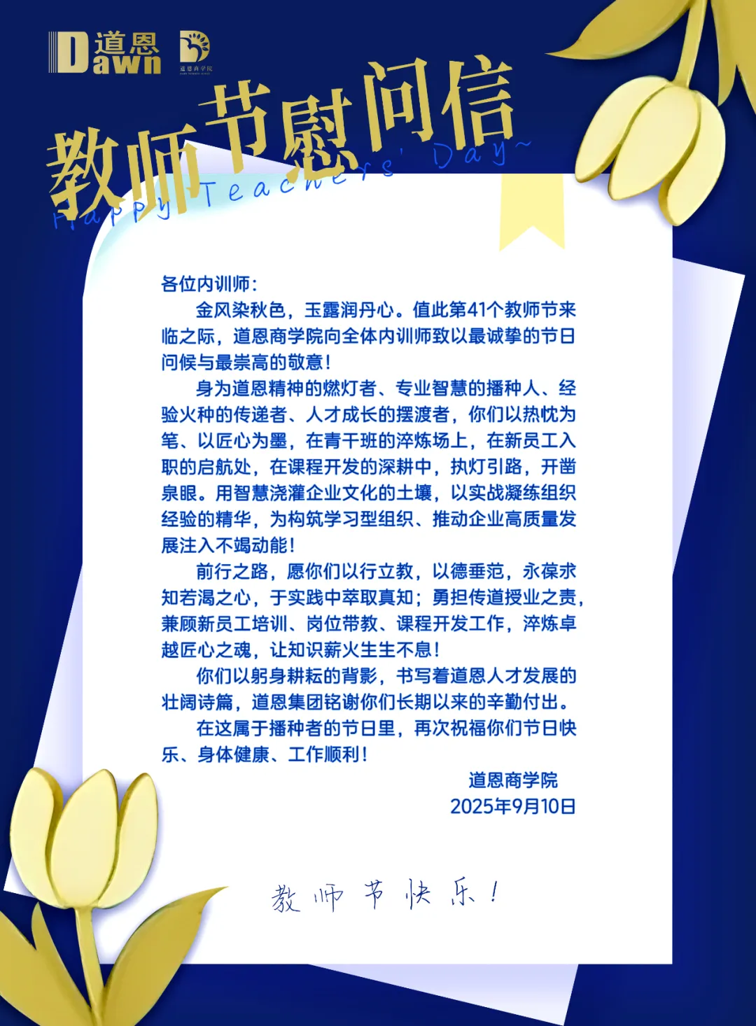 教師節(jié)|道恩“致敬師者、獎勵學(xué)子”
