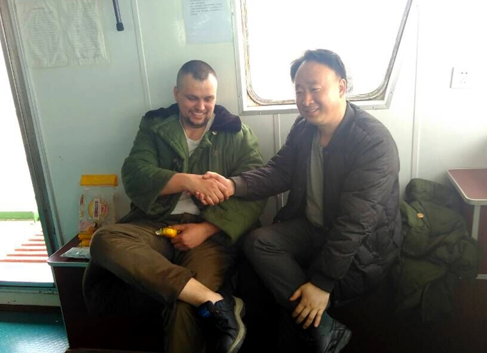 “道恩7”貨輪上一片忙碌,船員為其提供棉衣、食物和淡水。經過簡短溝通得知,落水者為烏克蘭人。被救后,他口中一直不停地用英語說著感謝。隨后,船長向天津海事局船舶交通管理中心報告救人成功的喜訊,并協(xié)調公安、邊防、口岸等部門,妥善移交該外籍船員。“誰遇見這樣的事,都會這么做,我們義不容辭?!泵鎸Σ稍L,船長李建銳如是說。
