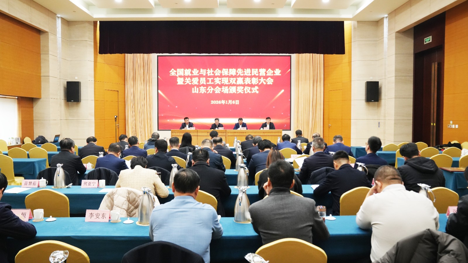 1月6日,全國就業(yè)與社會保障先進民營企業(yè)暨關愛員工實現(xiàn)雙贏表彰大會在北京召開,全國政協(xié)副主席、全國工商聯(lián)主席高云龍出席會議并講話,全國工商聯(lián)、人力資源社會保障部、全國總工會有關負責人出席會議。會議采用線上線下相結合的形式,主會場設在全國工商聯(lián)。視頻會議結束后,道恩集團董事長、總裁于曉寧作為全國關愛員工優(yōu)秀民營企業(yè)家,參加在淄博舉行的山東省表彰大會頒獎儀式。