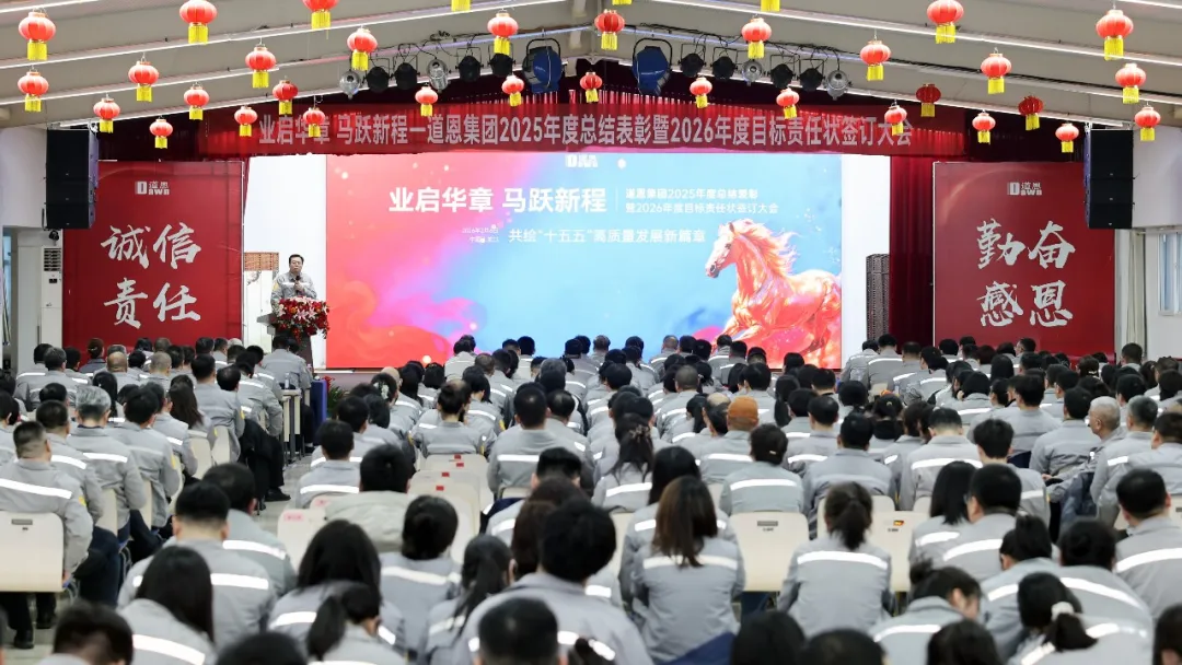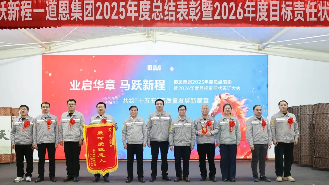 2月6日,道恩集團(tuán)在道恩商學(xué)院召開主題為“業(yè)啟華章 馬躍新程”的2025年度總結(jié)表彰暨2026年度目標(biāo)責(zé)任狀簽訂大會,旨在總結(jié)得失,研判形勢,表彰先進(jìn),激勵全體干部員工接續(xù)奮斗,推動企業(yè)健康發(fā)展、高質(zhì)量發(fā)展。會議在山東龍口設(shè)主會場,在海內(nèi)外設(shè)11個視頻分會場,道恩集團(tuán)董事長、總裁于曉寧出席會議并講話。