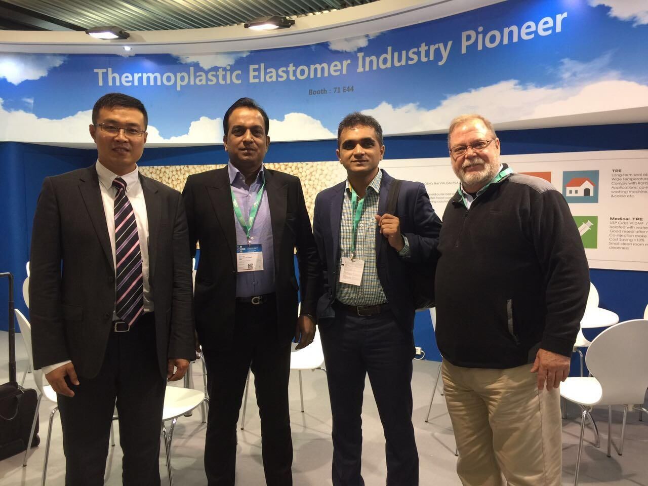 展會上,道恩高材公司展示的主要產(chǎn)品有TPV系列,新產(chǎn)品為一體化發(fā)泡TPV,很多國際客戶對道恩高科技含量的產(chǎn)品表示震驚和欽佩,并得到各主流汽車廠家的認(rèn)可。此外,TPE醫(yī)用材料、工程塑料的長玻纖增強PP和無味熔噴料也是展示的亮點。美國庫博公司全球采購總經(jīng)理表達(dá)了與道恩合作的愿望,德國百年企業(yè)舍弗勒集團旗下LUK公司前來咨詢一體化發(fā)泡TPV情況。據(jù)統(tǒng)計,參展期間共接待客戶116個,有效傳播了道恩的國際化品牌形象。